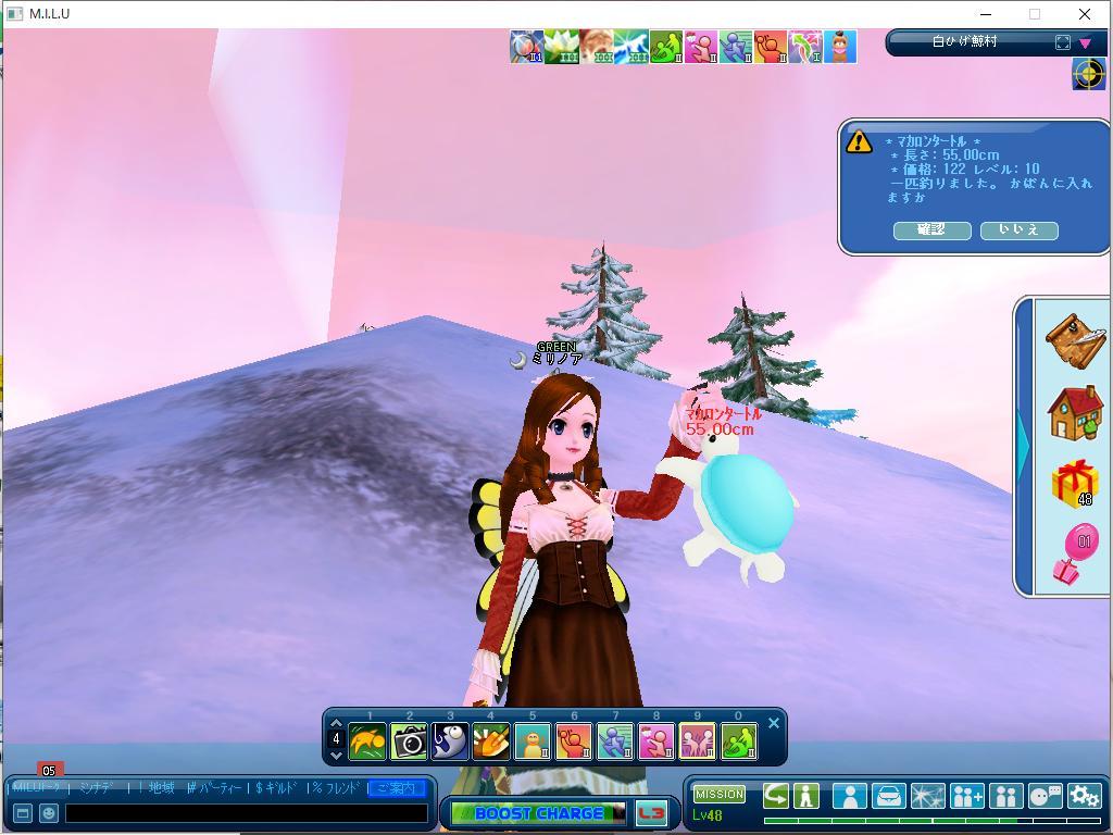 樹氷シークで、イベ釣り30してましたら、あら!ルビーと、もういっちょう100匹釣りのほうが完成しました。あと、緑本完成のために、日韓さーばーへ。ちょっと高かったけど、いいやーと、おもいました。で、2回で調合成功いたしました。うれちい♬