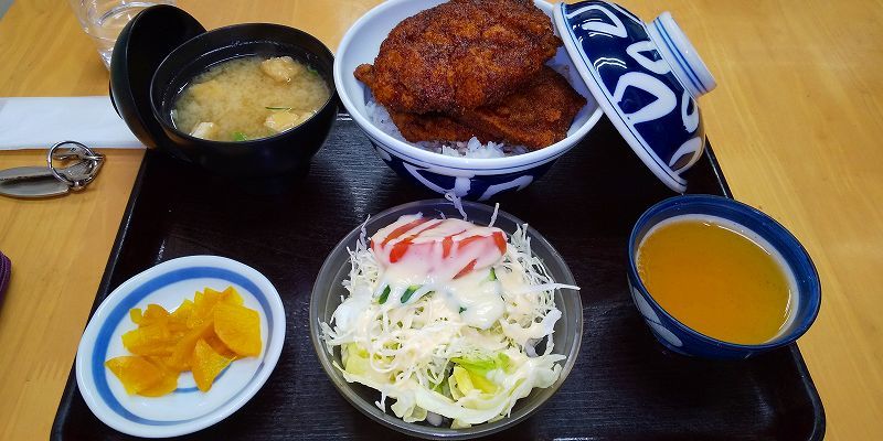 名物「ソースカツ丼(揚げたてカツ3枚)」のセット1,150円に、この日(3/7)が「メ(ミ)ンチカツの日」ってラジオで聞いたので、「メ(ミ)ンチカツ(勿論揚げたて)」1枚400円をトッピングいたしました(≧▽≦)ゞ