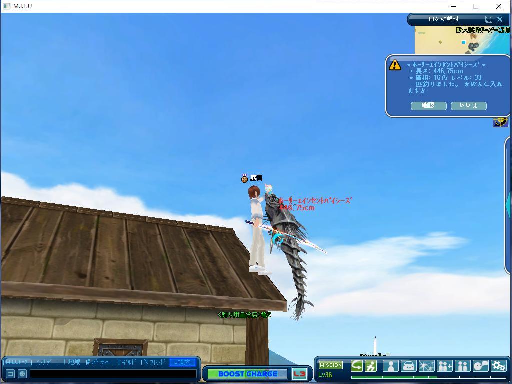 教わったマリーンの屋根の上からです 結果は クエ15/15でクリアー出来ました。