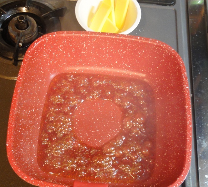 リンゴ切って、グラニュー糖まぶして~ 鍋でカラメル作って~ バター投入!