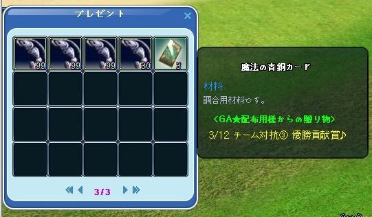 深海釣り大会で、Aチームが優勝しました (^_^)/ プラエビとカード3枚 届いていました (*^-^*)