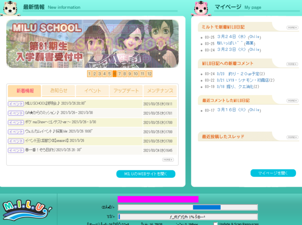 トップ > MILU日記 > アプデ明けない