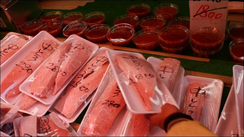 イクラ醤油漬け500gで1000円、酢だこ1本1000円、甘エビ1kg1000円などを買いました。