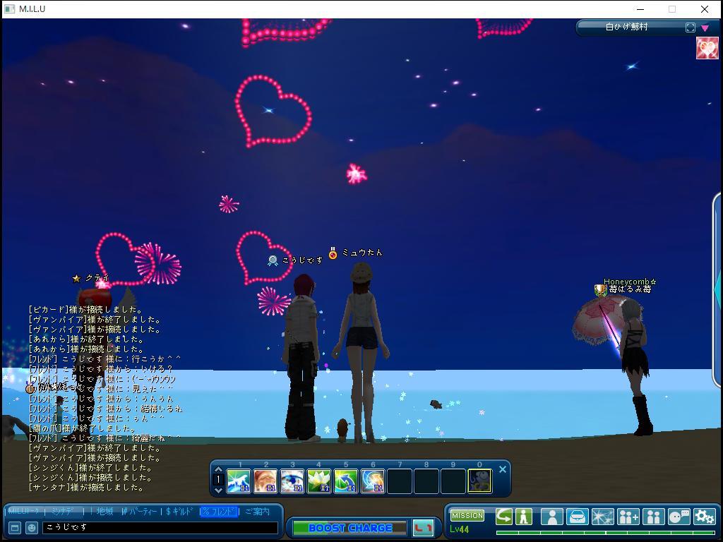 ちょうどハートがでたから撮ってみた^^ 花火デートできてよかった(*^_^*) 少しの間だけ熱がさがってくれたから来れたよ^^ こうちゃん誘ってくれて(人''▽`)ありがとう☆