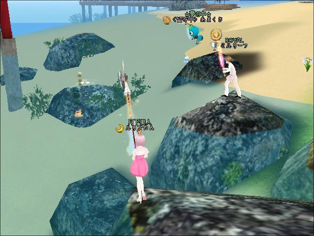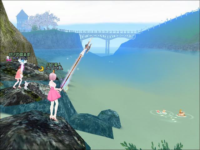 その後、MILU神社の鳥居のところの岩場で釣りをしたわ。