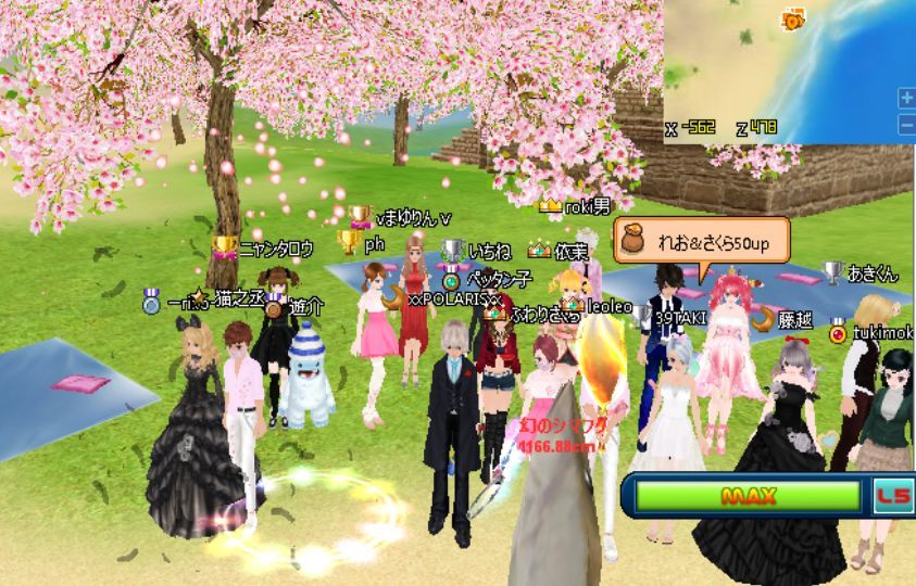 桜の木の下でたくさんの人が集まりました。