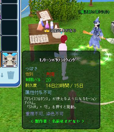 こないだ耐久1日だけ空飛んだ羽、調合してみたら、3回目で成功しましたー^^