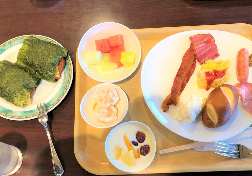 朝食はポーク卵おにぎりとかをサブウェイ風にアレンジして注文できました!