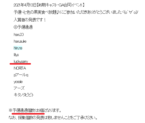 予選通過個数は9個だったのね。