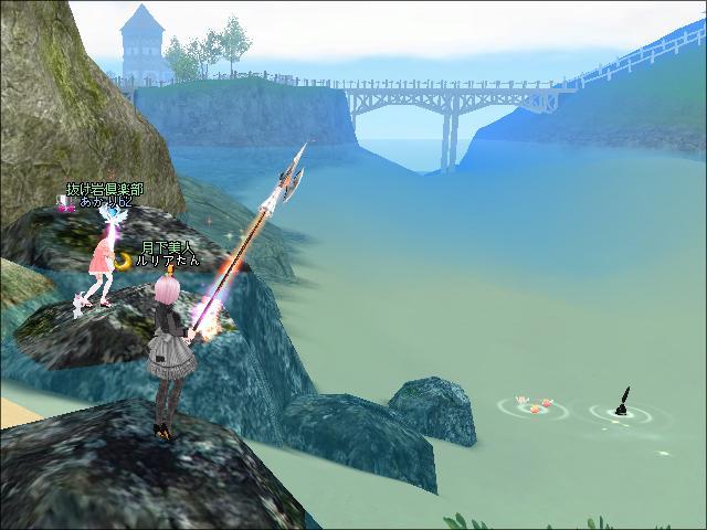 夕方、朝と同じ岩場で釣りをしたわ。幻の魚や、