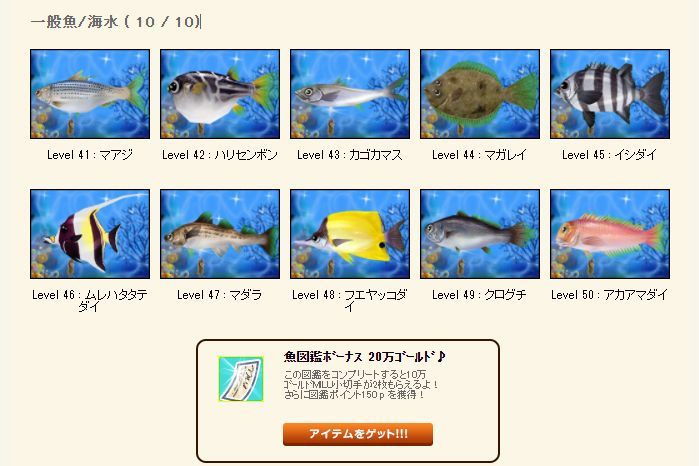 一般魚/海水41~50が埋まったYO!
