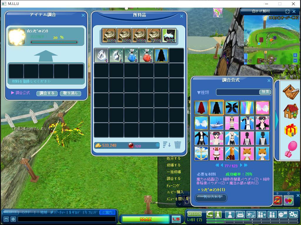 | シノビマントの調合成功( ^-^)/:★*☆オメデトです♪ |