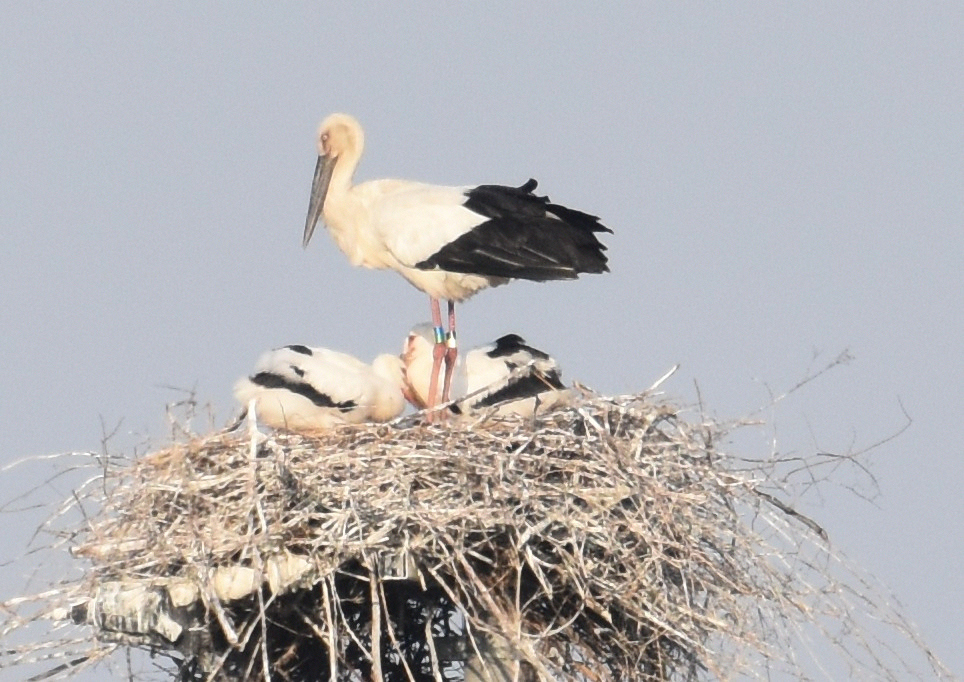 コウノトリの営巣です。 2羽育ってます・・3羽だったかな? 巣の周り400mは立ち入りを禁止されているので、 望遠を使ってもうまく撮れませんでした^^;
