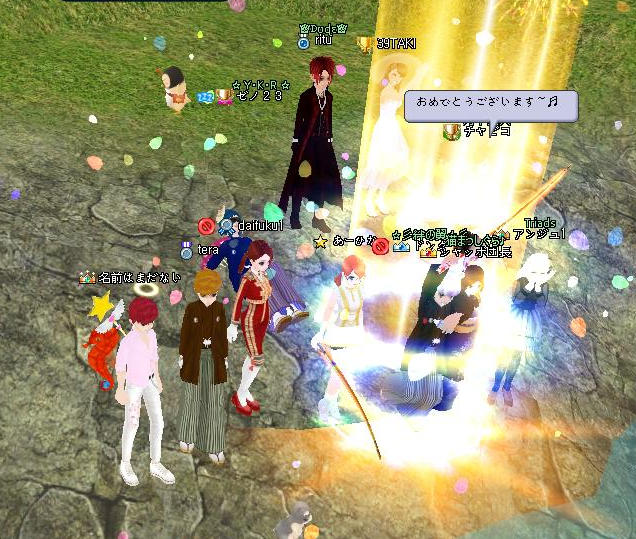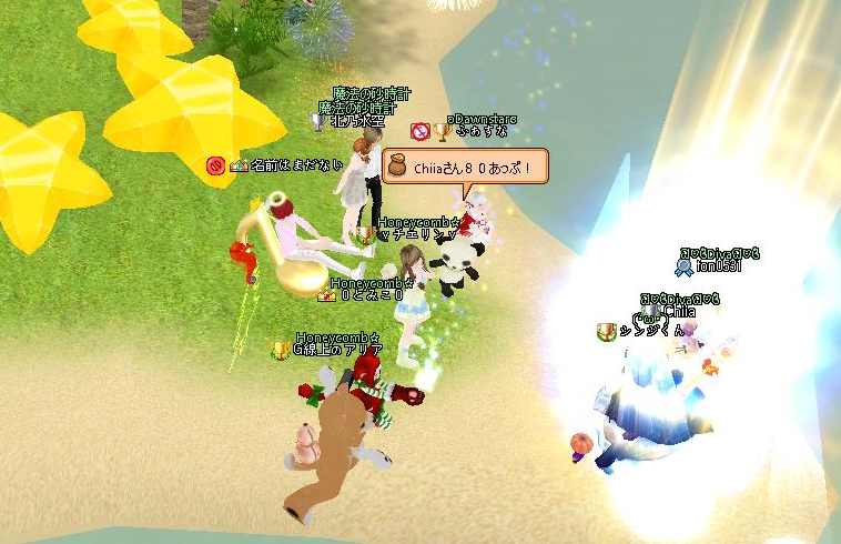 夜は、ChiiaさんのLv80アップ、その次男のfonさんのLv30アップ式に参列させていただきました^^