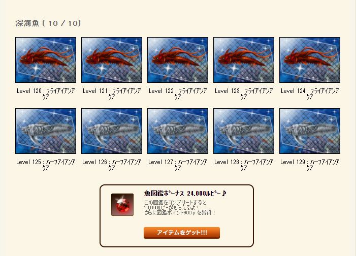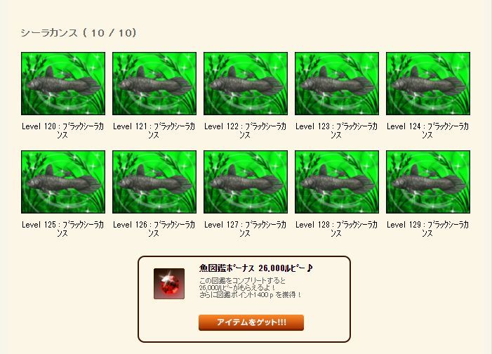 レベル100に到達して上のほうの図鑑が埋まったYO!