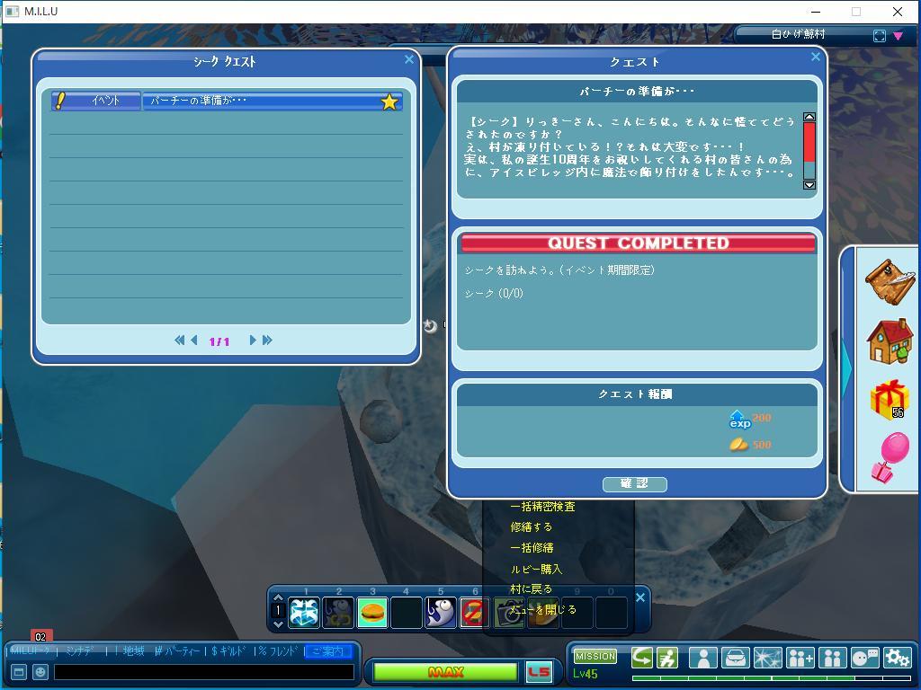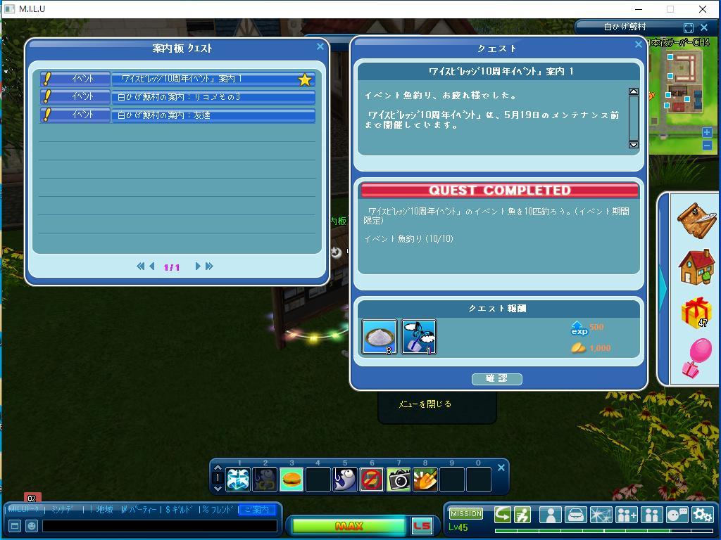 以上が、完了したイベントのクエストです。