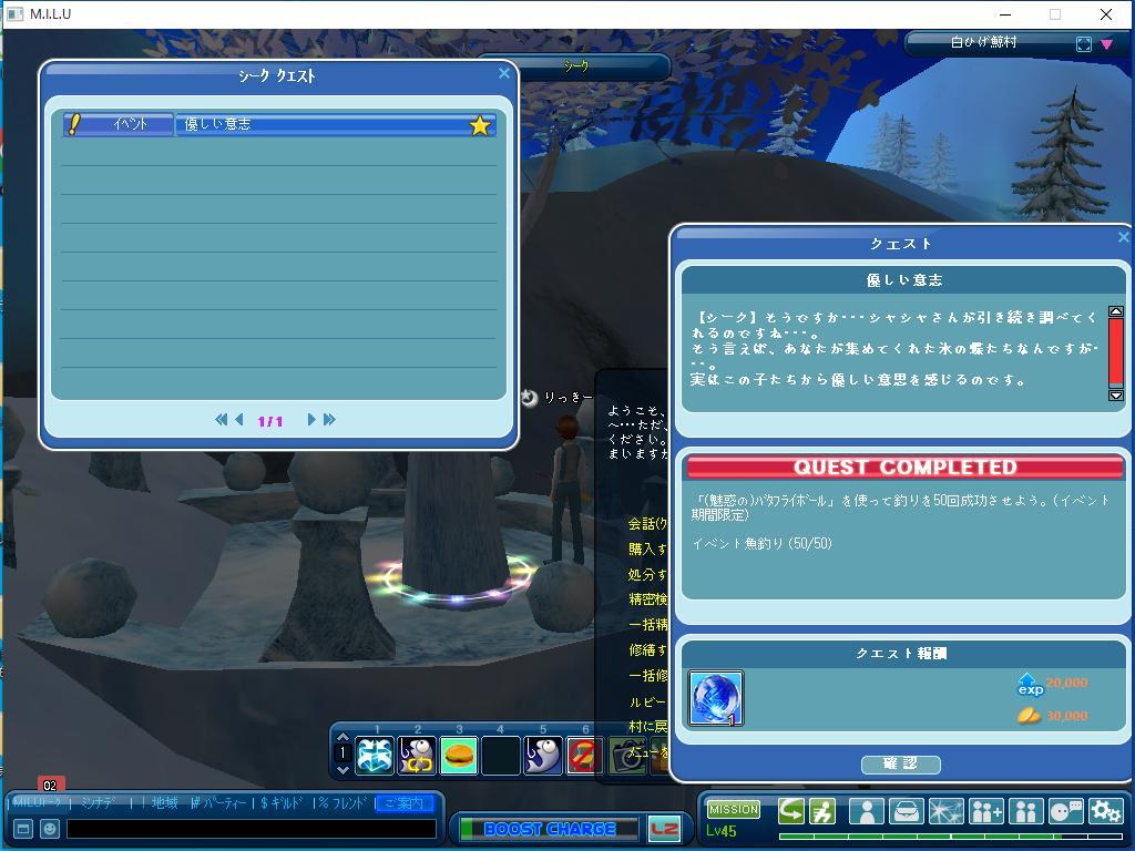 今日は、イベント釣りだけをしていました。 そのイベントのクエストを一つだけ完了しました。