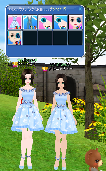 ありーがおソロのイベ服ゲットしてくれ(∀`*ゞ)エヘヘ 似てます??私達、可愛いでしょ(*´∀`*)
