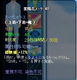 妹がL45のお祝に紫陽花スーツに属性付加をつけてプレゼントしてくれました