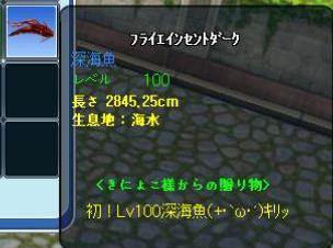 きにょこちゃんがLv100の初深海を釣ったとのことで^^ おめでとうございますー^^そしてありがとうございます^^