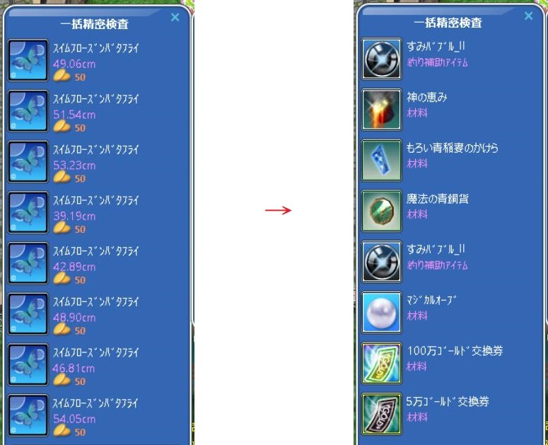 マジカルアイテムですか… そのうち、爺さんに会いに行こう… そして、恒例の たま~に釣れるというレアをまとめてポイッ
