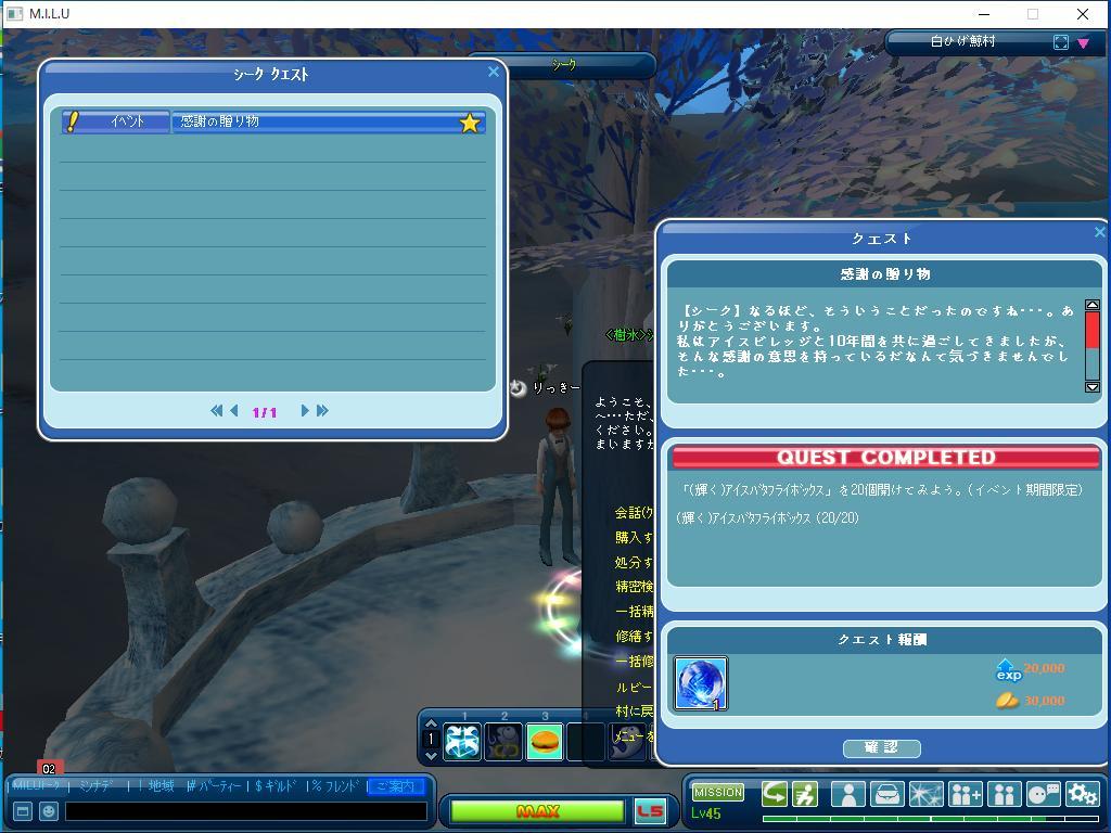 こちらが、本日、完了した、イベントのクエストです。