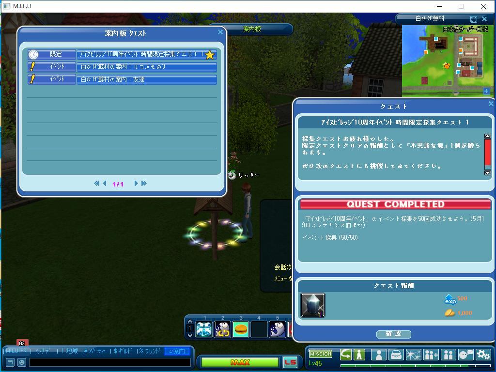 イベント採集のクエストは一つ完了しました。