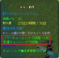 未チューンだった45竿がパワー・幸運ともに5段階チューンとなりました(/・ω・)/