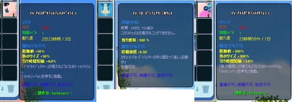 注目すべきは、右のイヤリング。 300%とか、凄すぎ! レベ上げはクリアしたけど せっかくなので、マボ釣りしています^^ そして、ミルウェイはフェアリーです。
