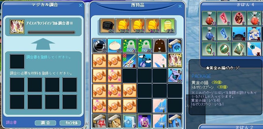 マジカル調合で5回して当たりは2回(黄金の錨セット・EV装備品)