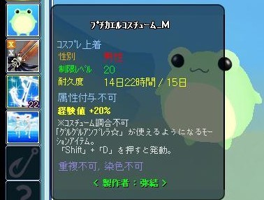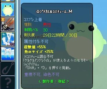 「弥結様がマジカルでプチカエルコスチュームMを獲得しました!」
