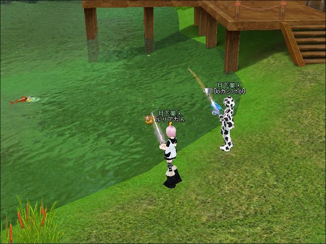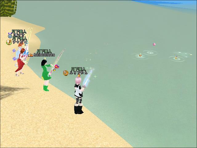 夜、ギルメンさんたちと釣りをしたわ。
