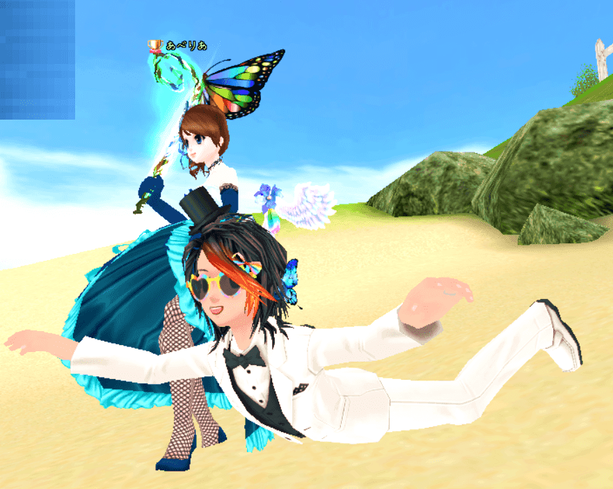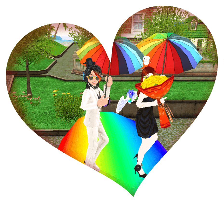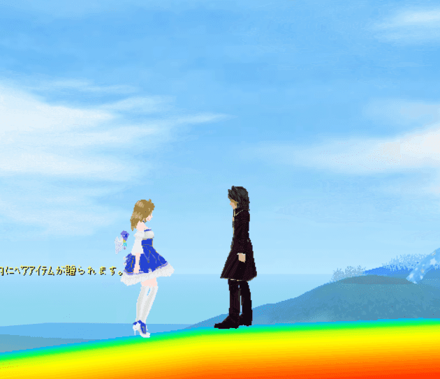 アイテムは、メガネアイテムで、エモは、レインボーアンブレラです。