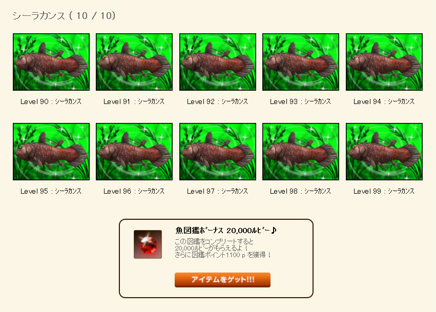 シーラカンスLv90~99