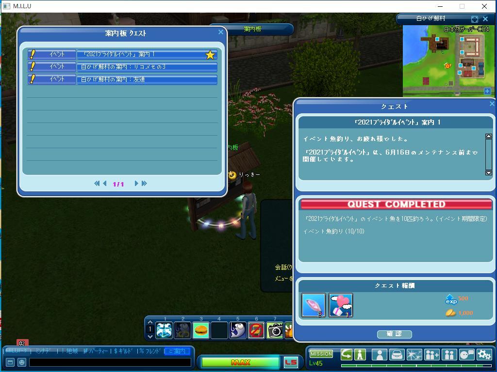 イベントのクエストは、一つだけ完了しました。
