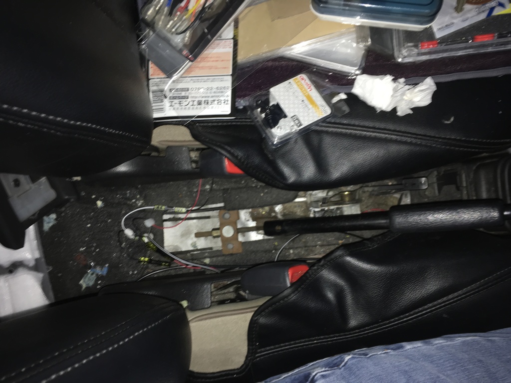 こうやって車内の床面をちょっとずつ剥がして細い線を這わせて、この前も見せたと思うけれど…
