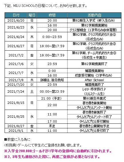 ミルスクールのスケジュール