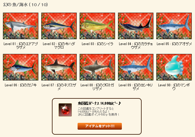 魚図鑑の「幻海水」Lv81~90 が埋まりました~