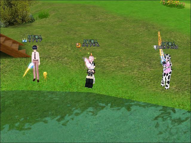 夜、ギルメン3人で釣りをしたわ。