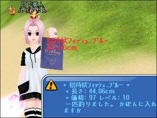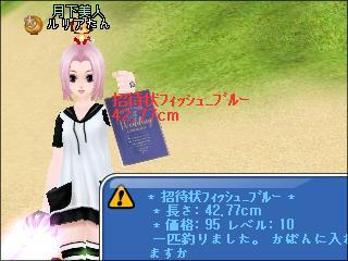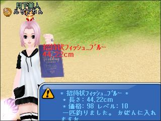 いつもの招待状フィッシュ_ブルーしか釣れなかった……けど、下2桁ラッキーセブンや、