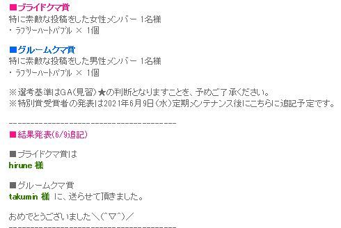 クマ賞もイベ王も入賞おめです! |
