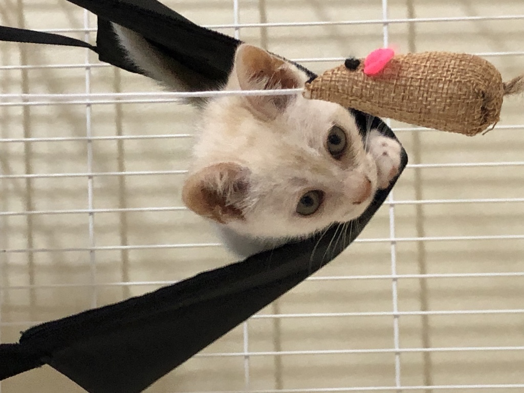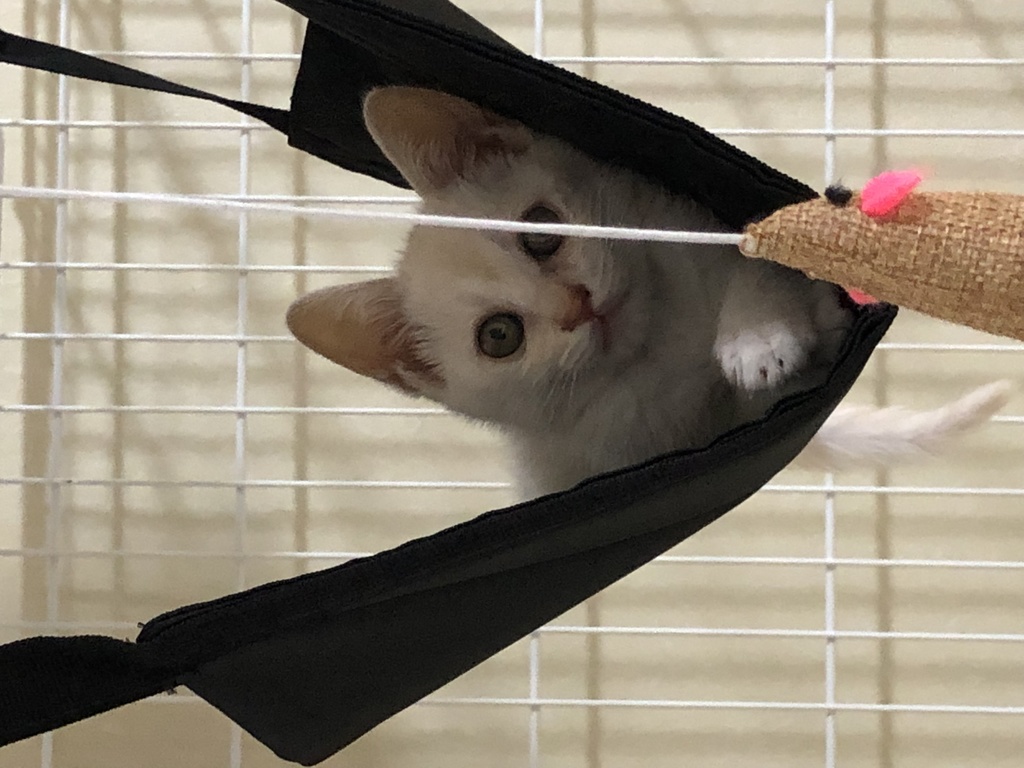 最初、ハンモックが怖くて乗れなかったのですが、お気に入りとなり、今では寝床になっています。