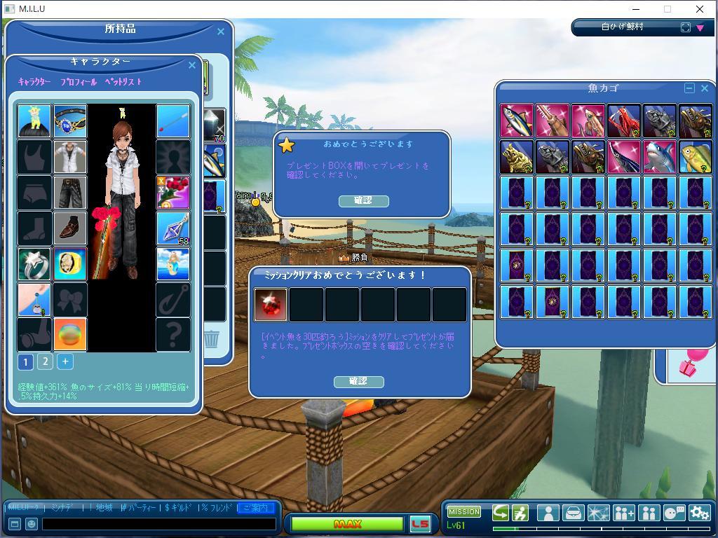 一般魚20匹とイベ魚30匹釣れてから、露店での販売で終わったw