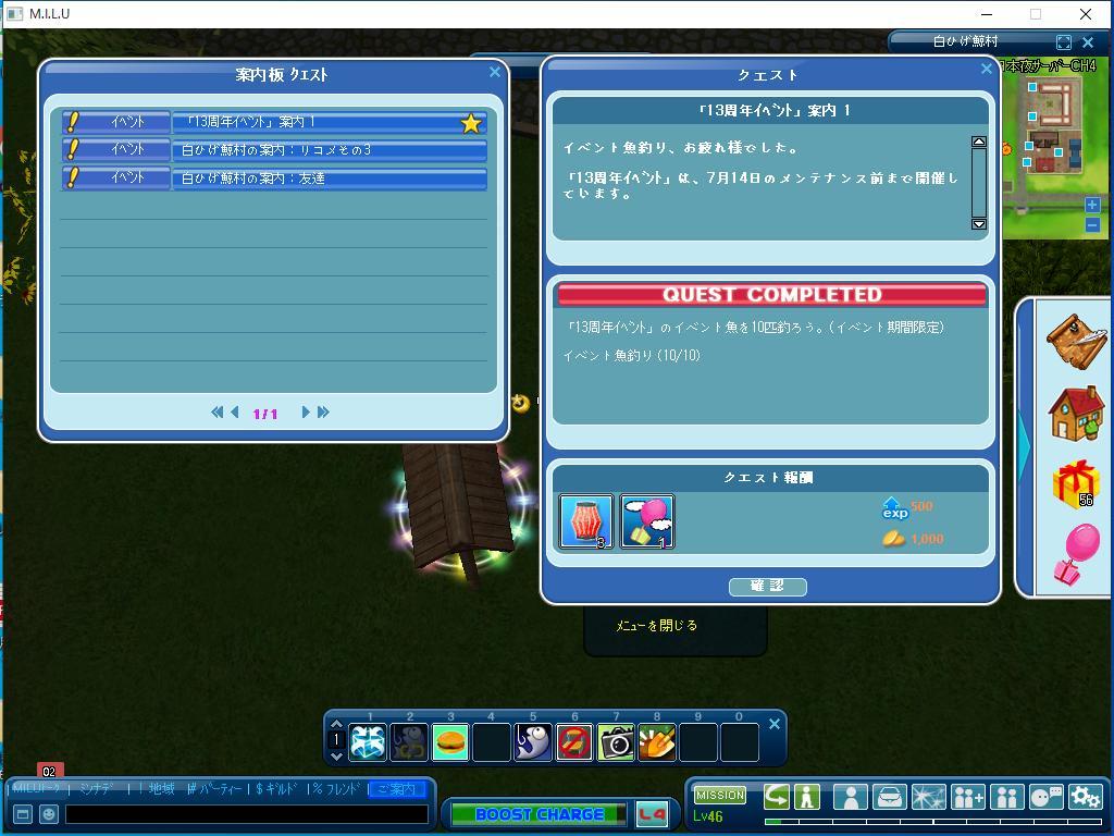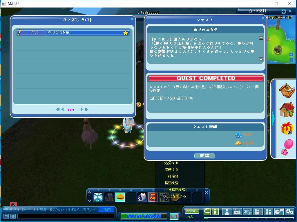 以上が、本日、完了したイベントのクエストです。