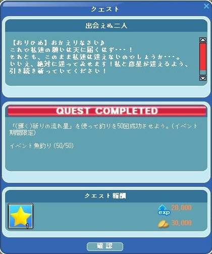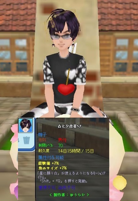 | 七夕ヘアスタイル、かっこいいでしゅ。もう、イベント釣りおわったですか。すごいですー。 |