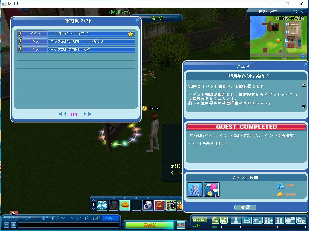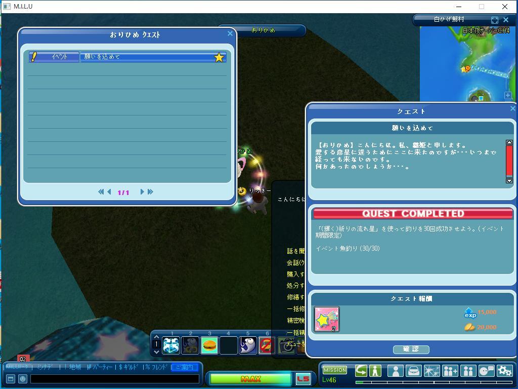以上が、本日、完了したイベントのクエストです。