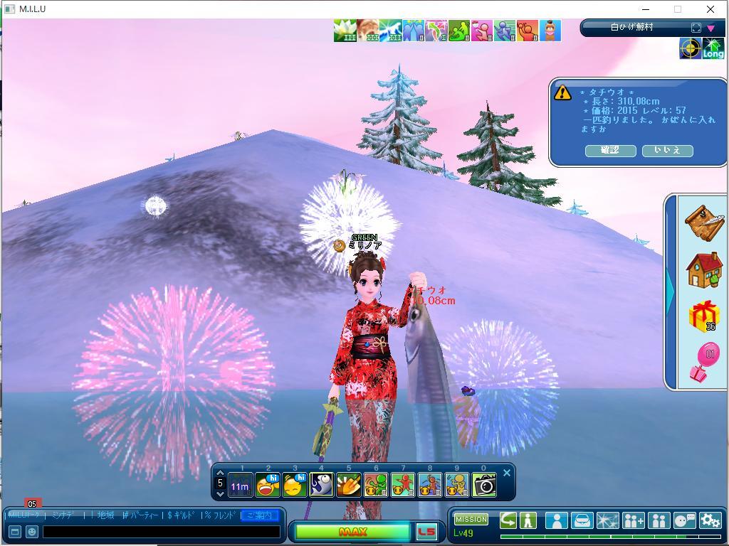 夕方からいままで、釣ってました。86.77%までいきました。むーちゃんの作ってくれたコスチュームです。明日も早起きしてがんばります。おやすみなさいー♪