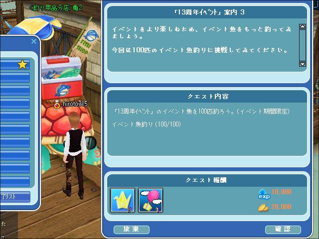 あと、昨日は、案内板3のクエストをクリアしつつ
