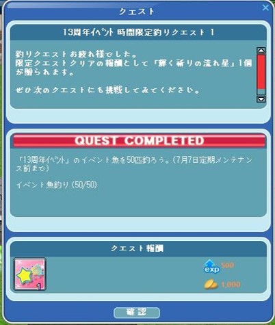 時限クエ①はクリア。
