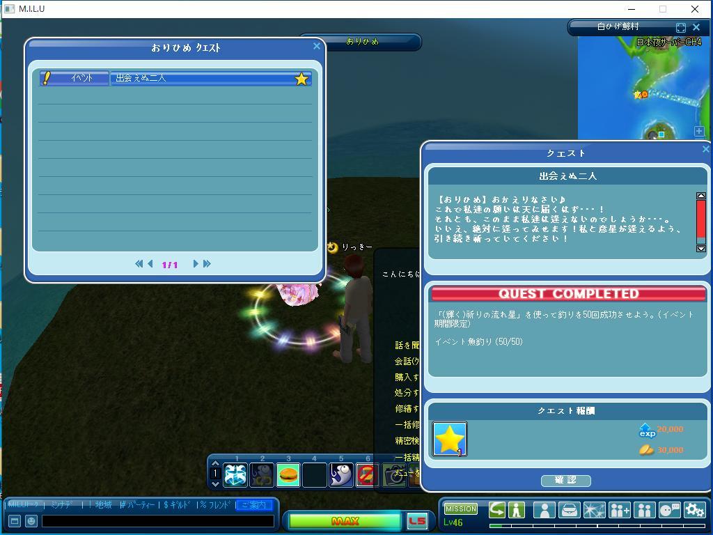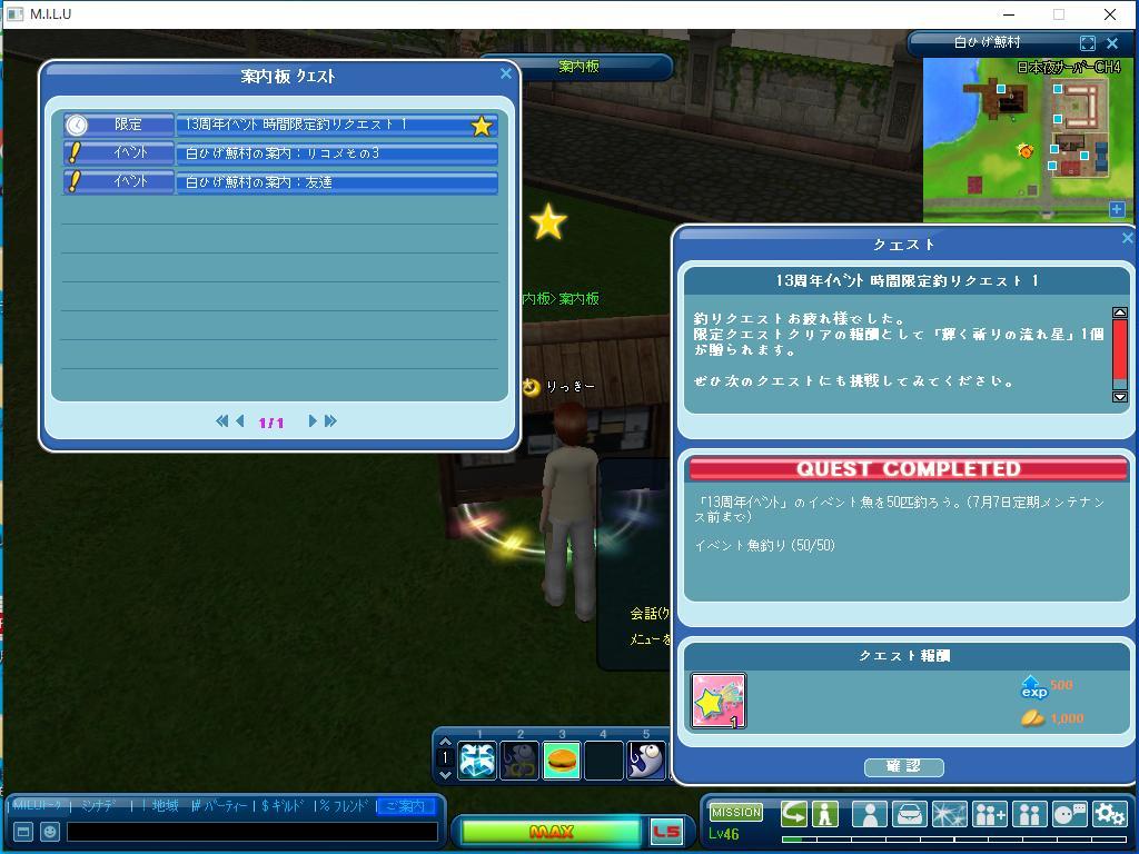 今日はイベント釣りに集中していました。 イベント釣りでは、二つのクエストを完了しました。